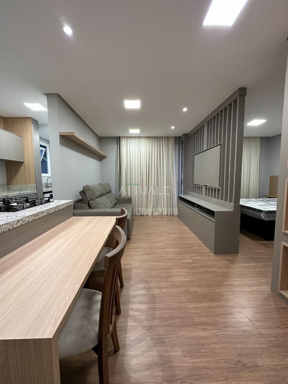 Attuale Imóveis aluga excelente apartamento no bairro Santa Catarina, 01 dormitório,esquadrias de pvc, vidros duplos, sala de estar e jantar integrados, cozinha, área de serviço, espera para split, 01 vaga de garagem. Completamente Mobiliado e Decorado.