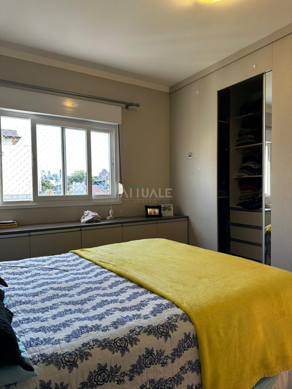 Attuale Imóveis vende apartamento semimobiliado no Pio X, 03 dormitórios, sendo 01 suíte, sala de estar e jantar com sacada oeste, banheiro social, cozinha, área de serviço, 2 vagas de garagem individuais.