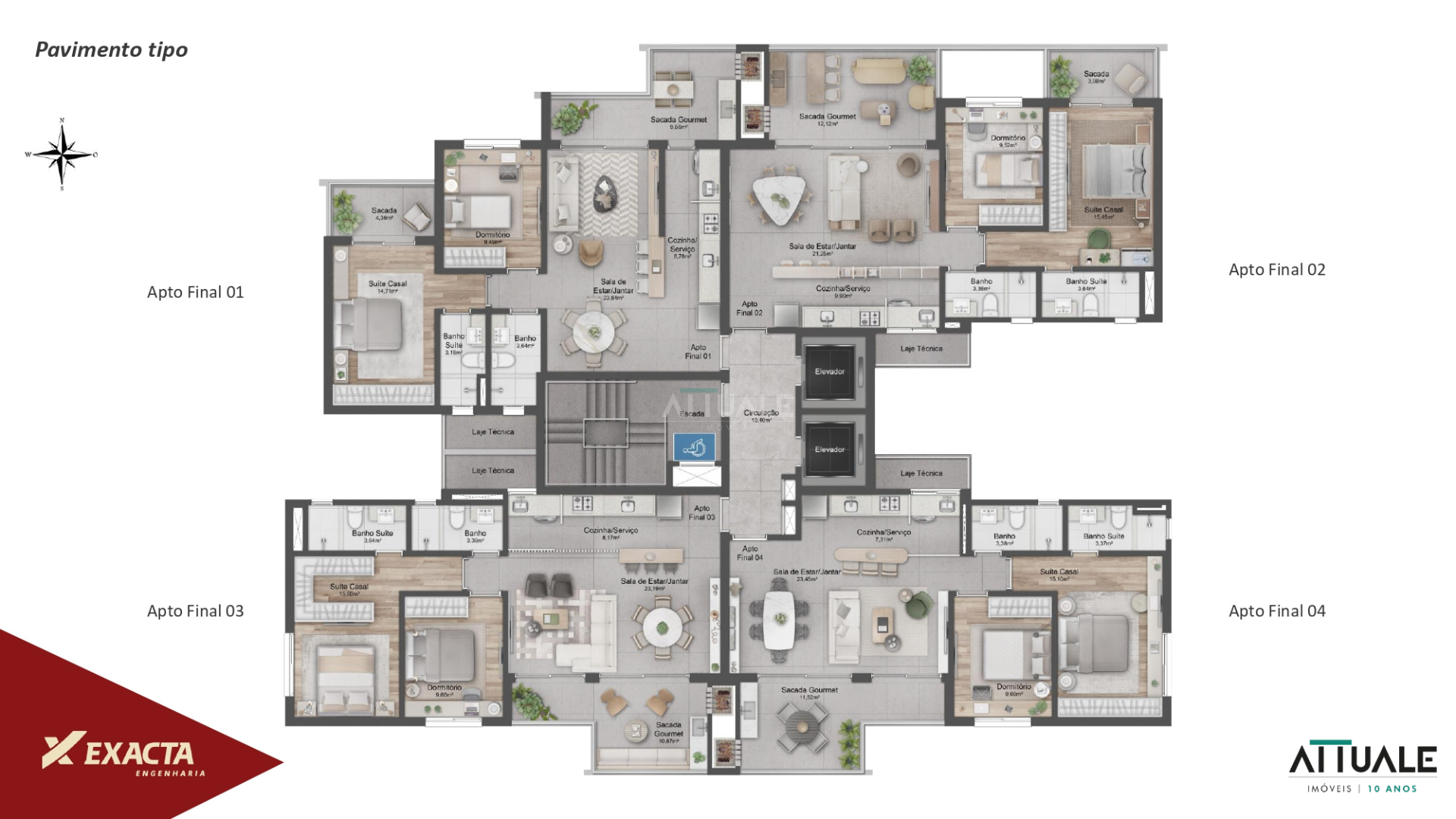Empreendimento com frente norte, 02 elevadores, área de uso comum mobiliadas, equipadas e decoradas. Salão de festas, espaço gourmet, fitness, espaço pet, espaço kids, playground externo, estar do fogo, guarita, amplo jardim em paisagismo, garagem com esperas de tomadas de veículos elétricos, reutilização da água da chuva, produção fotovoltáica e plantas customizáveis.