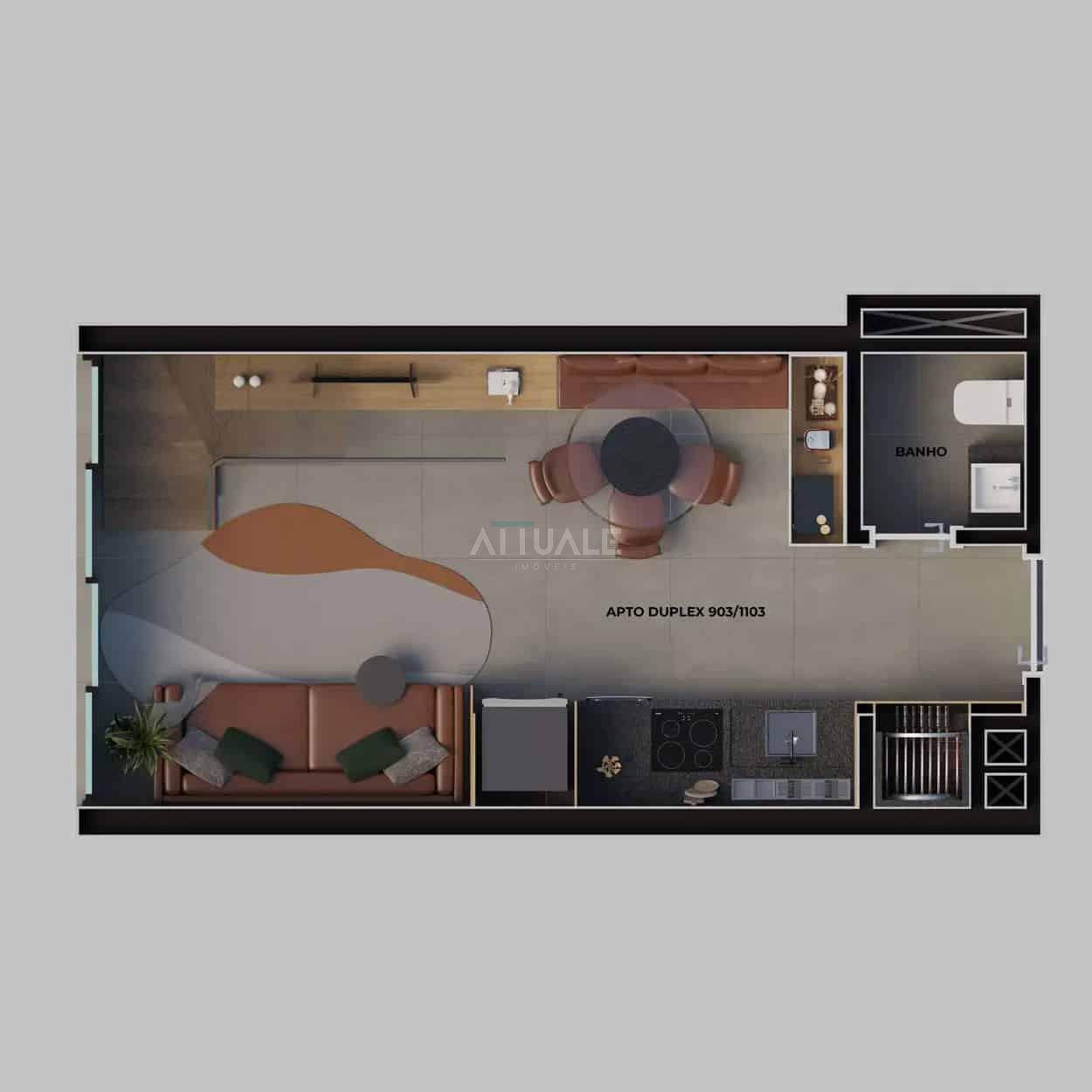 Attuale Imóveis vende studios duplex em construção no Bairro Exposição, com 01 box duplo de garagem.