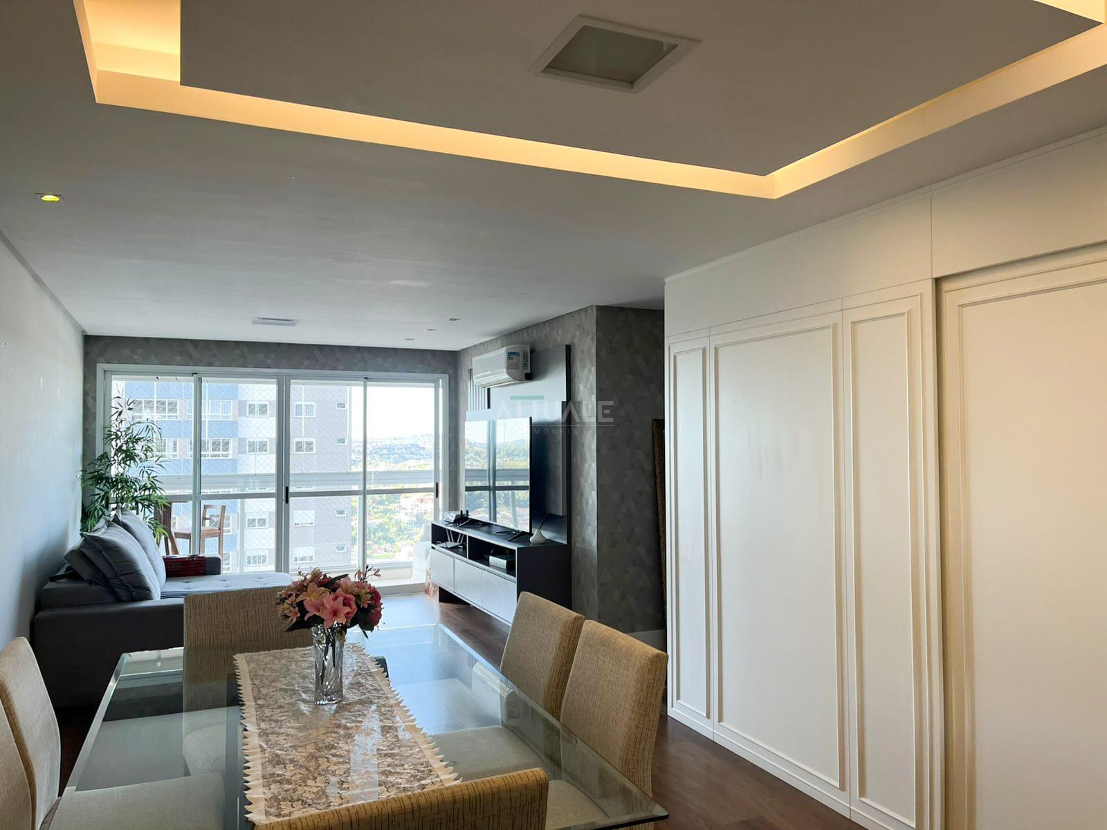 Attuale Imóveis aluga apartamento amplo semimobiliado no Bairro Madureira. Com área social integrada, 03 dormitórios sendo 01 suíte, área de serviço, ampla sacada, lavabo e um box duplo de garagem.