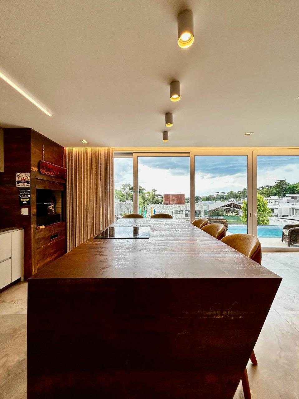 Attuale Imóveis vende casa mobiliada em condomínio fechado, com 330m² privativos. São 3 suítes sendo uma com closet, ar condicionado em todos cômodos, academia particular bem como piscina aquecida, piso aquecido, adega, escritório e uma área de integração com vista privilegiada.
