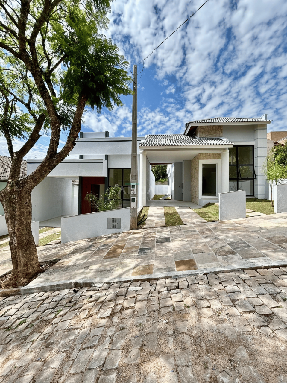 Belíssima residência com 111 m² de área construída, projetada para oferecer conforto e funcionalidade em cada detalhe. O imóvel conta com 3 dormitórios, sendo 1 suíte com closet, além de banheiro social e lavabo. A sala e a cozinha integradas, com pé-direito duplo, proporcionam amplitude e sofisticação, valorizadas ainda mais pela posição solar privilegiada (frente norte), que assegura iluminação natural durante todo o dia.