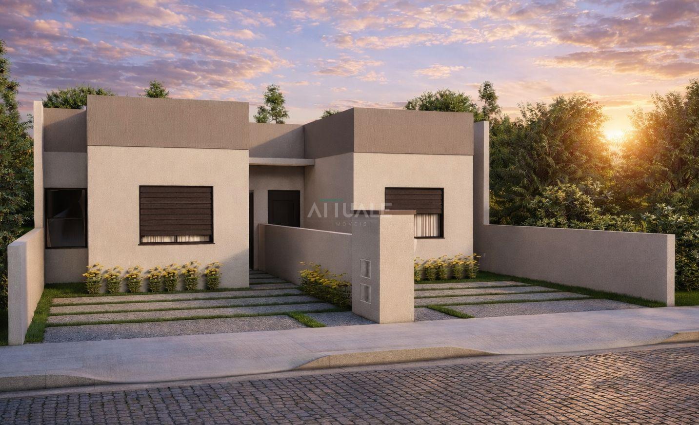Attuale Imóveis vende casa geminada em construção, localizada no Bairro Desvio Rizzo. O imóvel possui living integrado com a cozinha, 01 banheiro social, área de serviço, 03 dormitórios sendo 01 suíte, churrasqueira, piso cerâmico e laminado, espera para split e água quente, pátio de fundos com 32m²e vaga para 02 carros.