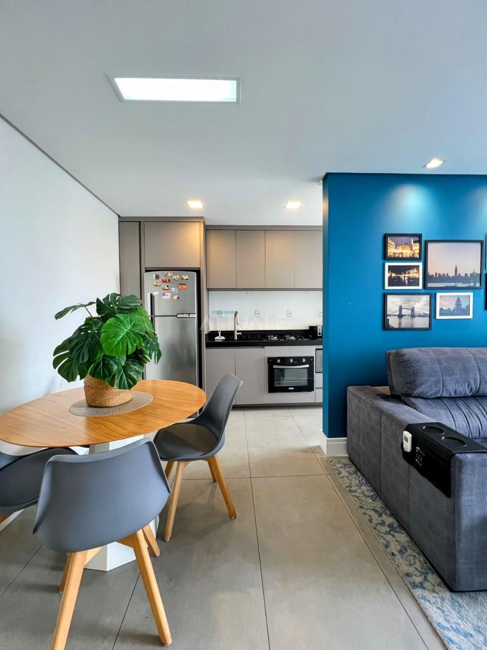 Attuale Imóveis vende apartamento completamente mobiliado e equipado, pronto para morar ou investir. O imóvel possui 01 dormitório amplo, sala de estar, jantar e cozinha integradas e área de serviço com acesso à sacada, 01 banheiro e vaga para 01 carro.