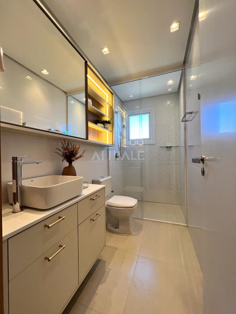 03 dormitórios, sendo 01 suíte, living 02 ambientes com sacada gourmet, churrasqueira e pia, cozinha, área de serviço individual com acesso a outra sacada fundos, banheiro social, esperas split e água quente, gás central, hidrômetros individuais, 02 vagas de garagem.