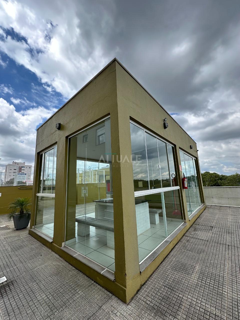 Prédio com portaria, elevador, salão de festa, quiosque e piscina.