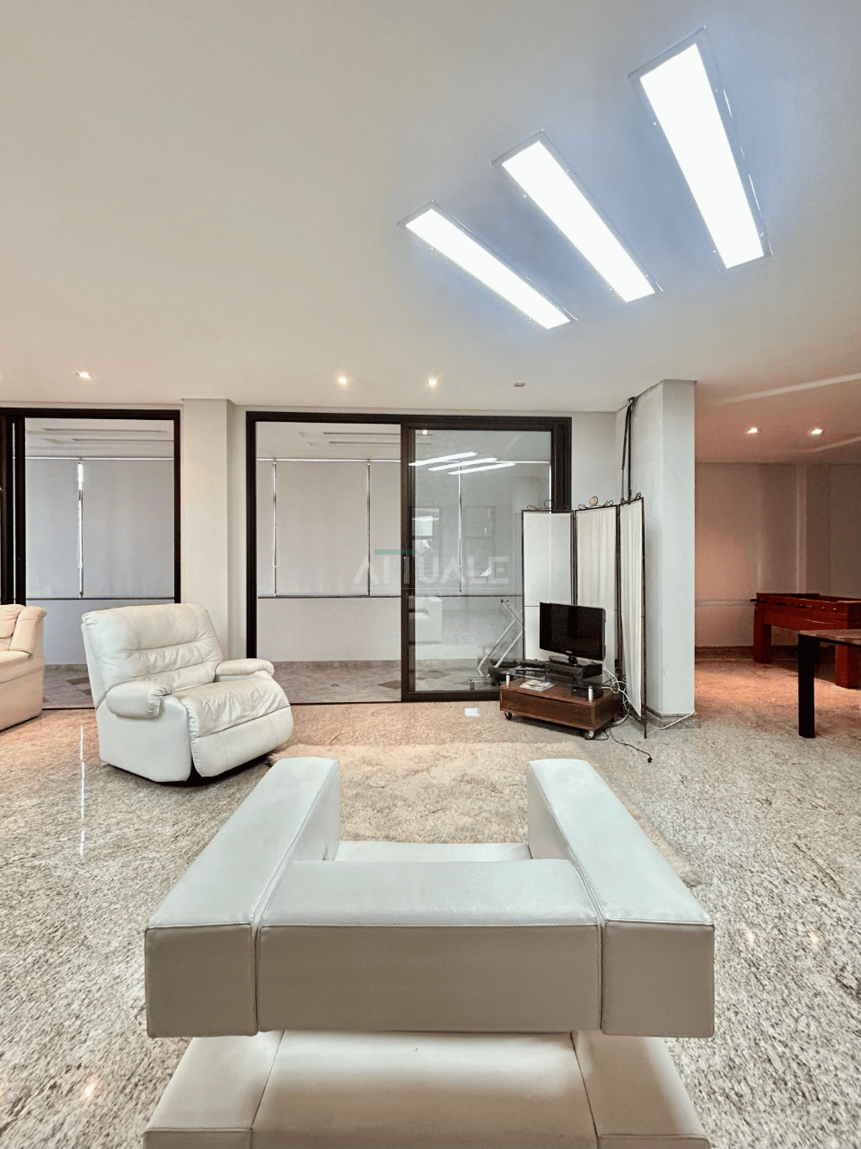 A área social é aconchegante e elegante, com lareira, piso aquecido e calefação, proporcionando conforto em todas as estações. Possui ainda uma ampla sacada totalmente fechada, perfeita para aproveitar momentos de descanso ou receber visitas.