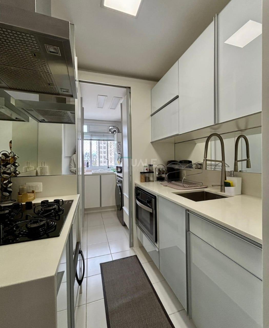Este apartamento conta com dois dormitórios, sendo uma suíte, e está finamente mobiliado, permanecendo no imóvel os móveis fixos. A posição solar leste garante ótima iluminação natural logo nas primeiras horas do dia, trazendo ainda mais aconchego aos ambientes. Possui sacada e uma vaga de garagem.