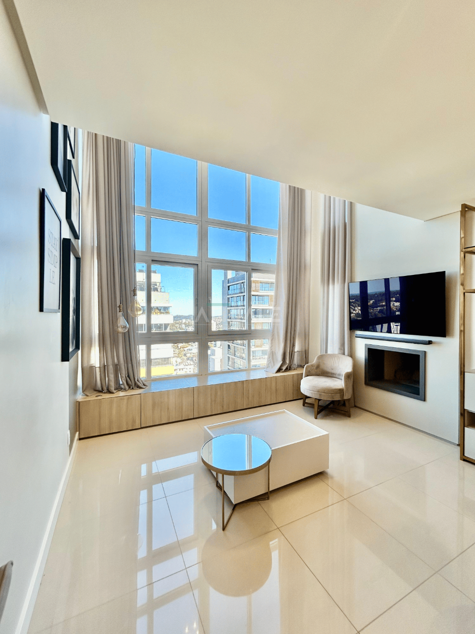 São 03 dormitórios, sendo 02 suítes, além de 01 lavabo. A área social conta com uma elegante sala de estar com pé-direito duplo e ampla janela, valorizando ainda mais a vista e a sensação de espaço.
