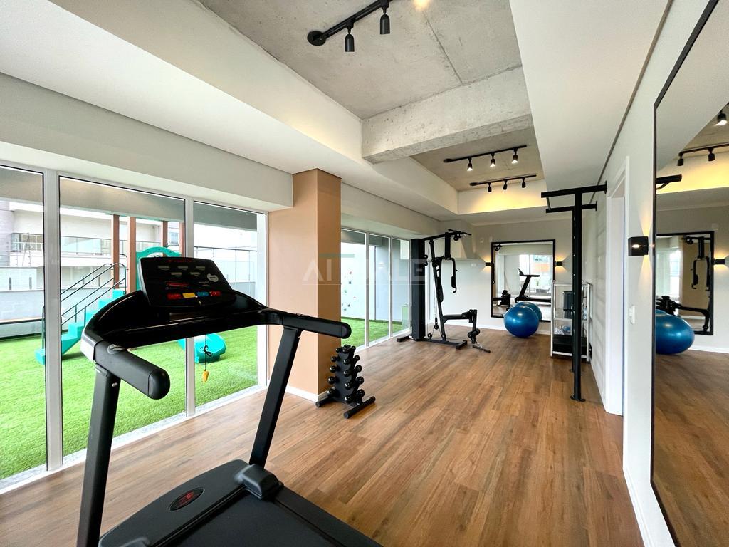 Prédio com elevador, salão de festas, brinquedoteca, espaço fitness.
