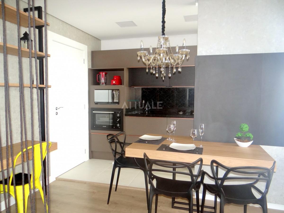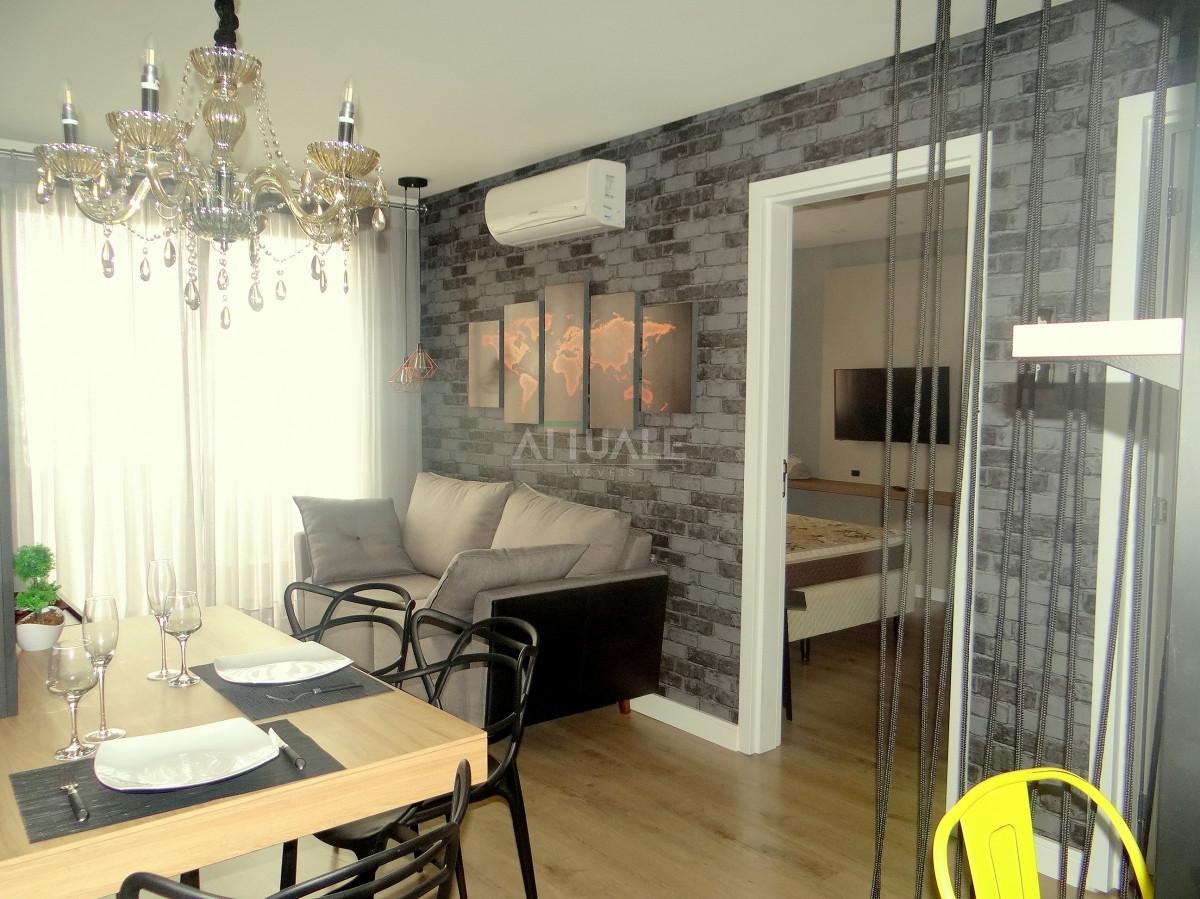 Attuale Imóveis aluga excelente apartamento localizado no bairro de Lourdes, finamente mobiliado com 43,00m² sendo, 01 dormitório, living integrado com sacada, cozinha, área de serviço, piso laminado e porcelanato, rebaixe em gesso e 01 vaga de garagem.
